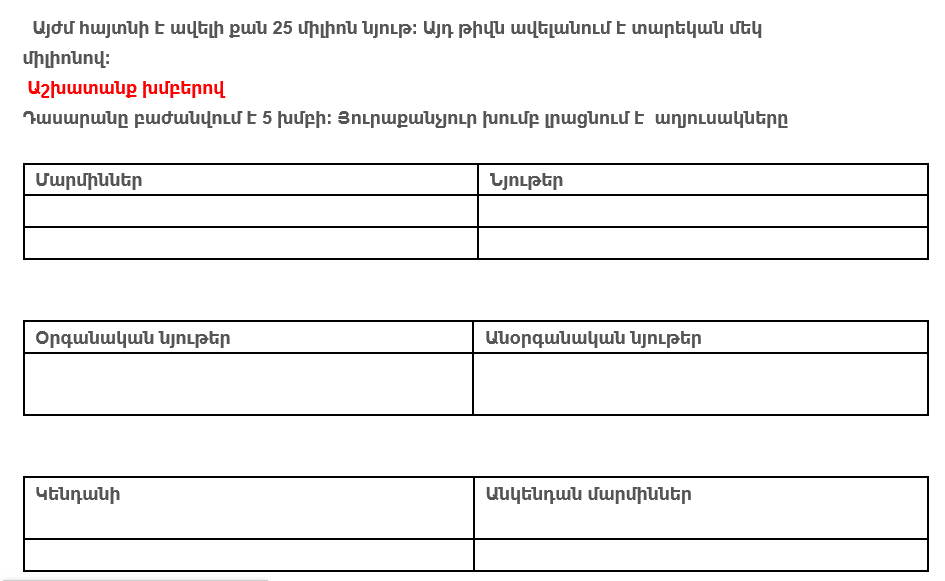 ՕՐԳԱՆԱԿԱՆ և ԱՆՕՐԳԱՆԱԿԱՆ ՆՅՈՒԹԵՐ
