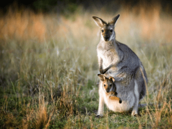 5. Самки кенгуру рожают ежегодно. В результате непродолжительной беременности, которая длится не более месяца, рождается крохотный детеныш, размером с горошину. Перед родами, мама-кенгуру вылизывает у себя на брюхе специальную дорожку, по которой кенгуренок будет добираться до материнской сумки. Новорожденный кенгуренок абсолютно слепой и беспомощный, он совсем не имеет меха, органы его недоразвиты. Едва родившись, он ползет по заранее проложенной дорожке в сумку. Там он присасывается к соску и остается в таком положении еще на 34 недели. Молоко поступает к нему «автоматически», так как сосать он пока не может. У кенгуру может вырабатываться до 4 видов молока, в зависимости от возраста кенгуренка. Если у кенгуру родился еще один кенгуренок, но старший еще находится на грудном вскармливании, у кенгуру вырабатывается сразу два вида молока.