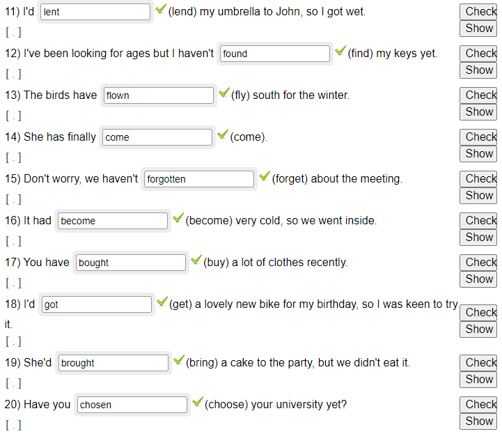 25) She brang (bring) some chocolates to the party.