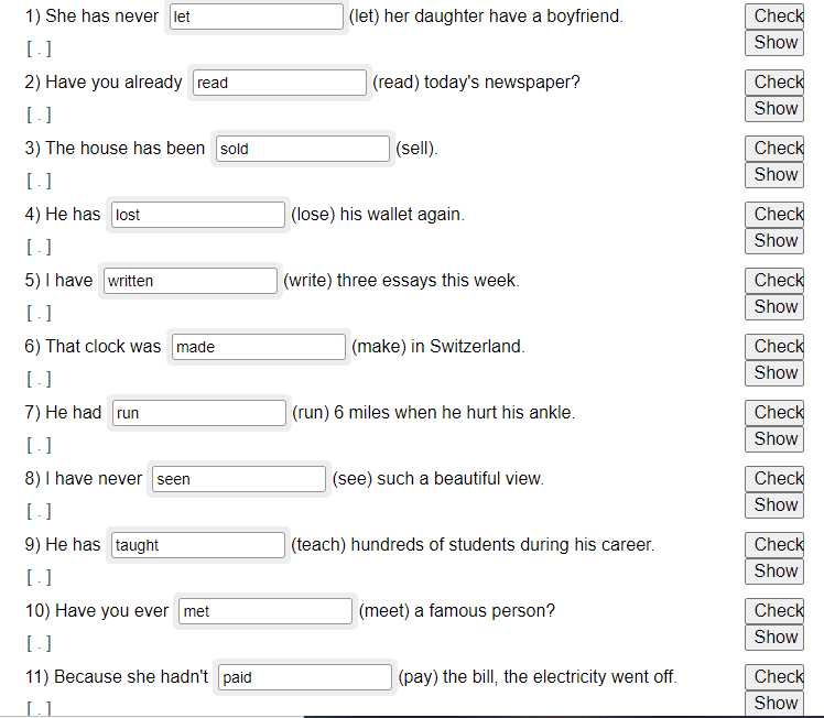2) I read (read) three books last week.