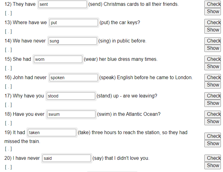 11) I knew (know) the answer yesterday.