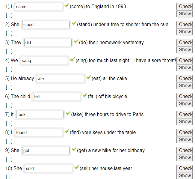 9) I gave (give) my mother a CD for Christmas.