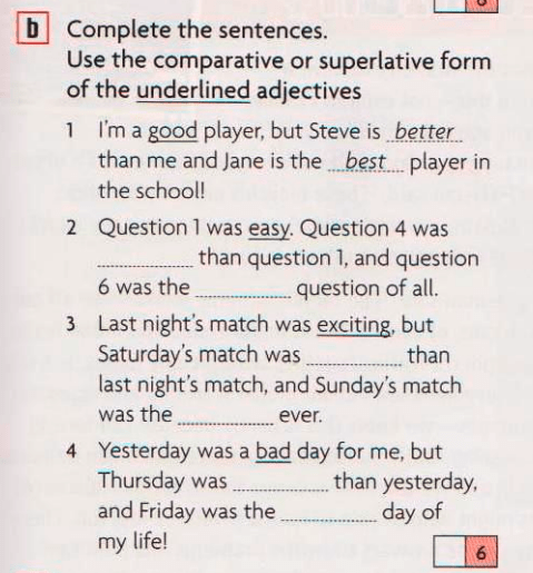 I am a good player, but Steve is better than me and Jane is the best player in the school!