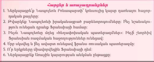 ՊԱՏԱՍԽԱՆ1. 1802թ․ Նապոլեոնը նշանավկել է կոնսուլ, իսկ 1804թ․ թագադրվել է կայսր Նապոլեոն Առաջին անունոով