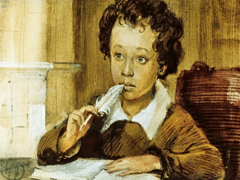 Уже в детские годы А. С. Пушкин начинает писать стихи. На это повлияла не только любовь мальчика к чтению, но и частые встречи в доме Сергея Львовича со знаменитыми писателями и поэтами того времени: Н. М. Карамзиным, В. А. Жуковским, Д. И. Фонвизиным, И. И. Дмитриевым и другими. В раннем возрасте А. С. Пушкин слушал те произведения, которые авторы читали в его доме. Постоянные разговоры о литературе, свидетелем которых был А. С. Пушкин, влияли на его мировоззрение. Вдобавок дядя будущего писателя Василий Львович Пушкин был известным поэтом того времени. С самого детства Александр Сергеевич имел огромные возможности для пробуждения поэтических способностей и предпосылки для того, чтобы стать настоящим писателем.