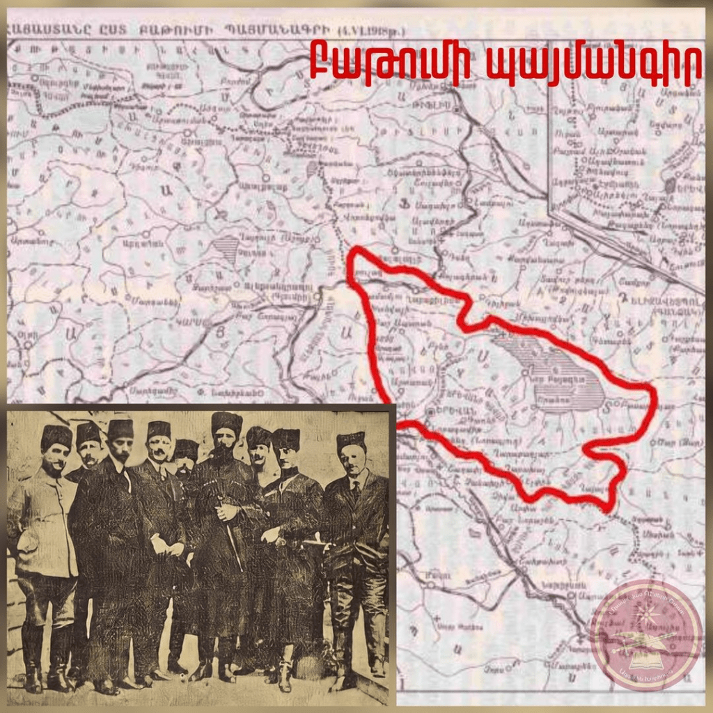Բաթումի պայմանագիր։ 1918թ․ մայիսի սկզբերին թուրք-անդրկովկասյան բանակցությունները վերսկսվեցին Բաթումում։ Թուրքերը մայիսի 26-ին վերջնագիր ներկայացրեցին անդրակովկասյան պատվիրակությանը, բայց հենց այդօրը Անդրկովկասյան Հանրապետությունը փլուզվեց, հանրապետություններից յուրաքանչյուրը ինքը պետք է լուծել Թուրքիայի հետ հարցերը։ Մայիսի 28-ին Հայոց ազգային խորուրդհը նոր պատվիրակություն ուղարկեց Բաթում, որ հաշտություն կնքեն թուրքերի հետ։ Պատվիրակությունը գլխավորում էր Ալեքսանդր Խատիսյանը։ Մայիսի վերջին սկսվեցին բանակցությունները և ավարտվեցին հունիսի 4-ին։ Կնքվեց Բաթումի հաշտության պայմանագիրը, որը շատ ծանրեր Հայաստանի համար, որոհետև շատ փոքր տարացք էր մնում հայերին։ Նաև Հայաստանը ունենալու էր սահմանափակ զորք։ Երկաթուղիները հսկելու էր Թուրքիան որ զորք տեղափոխի Ադրբեջան։ Բաթումի պայմանագրով Թուրքիային էր անցնում արևմտյան Հայաստանը նաև արևելյան Հայաստանի զգալի մաս։ ՀՀ տարածքը ընդգրկում էր միայն Սևանա լիճի ավազանը և Արարատյան դաշտի մի մասը։ Բաթումի պայմանագիրը իր ուժը պահպանեց մինչև համաշխարհային պատերազմի ավարտը 1918թ․ նոյեմբերը։